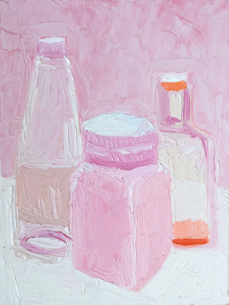 Pink Still-life: oil on canvas board, 11 x 9 inches