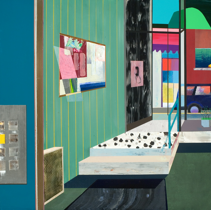 2005 Lobby, NYC Bathroom, Corner Bistro, The Rec, The Foxhead: acrylic on aluminum 24 x 24 inches