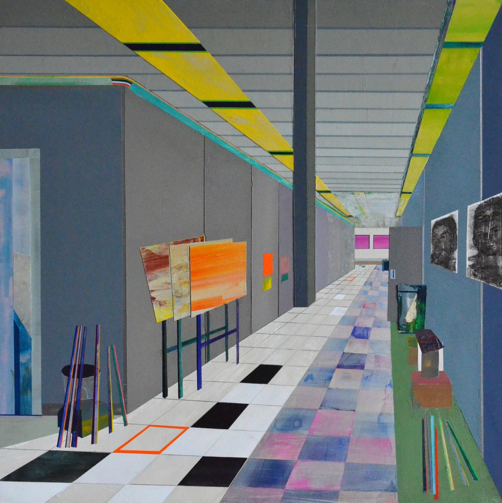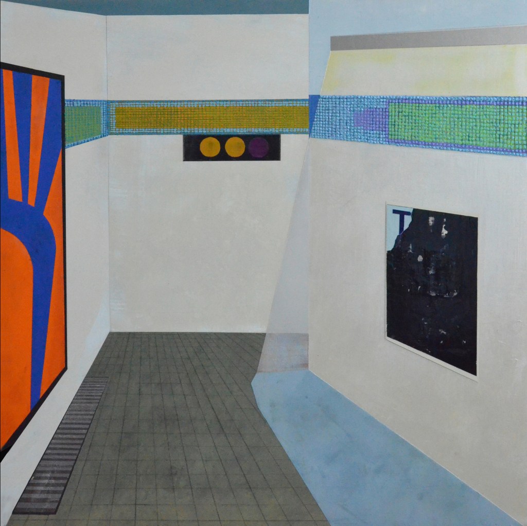 Subway Corridor: acrylic on aluminum, 24 x 24 inches
