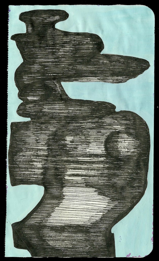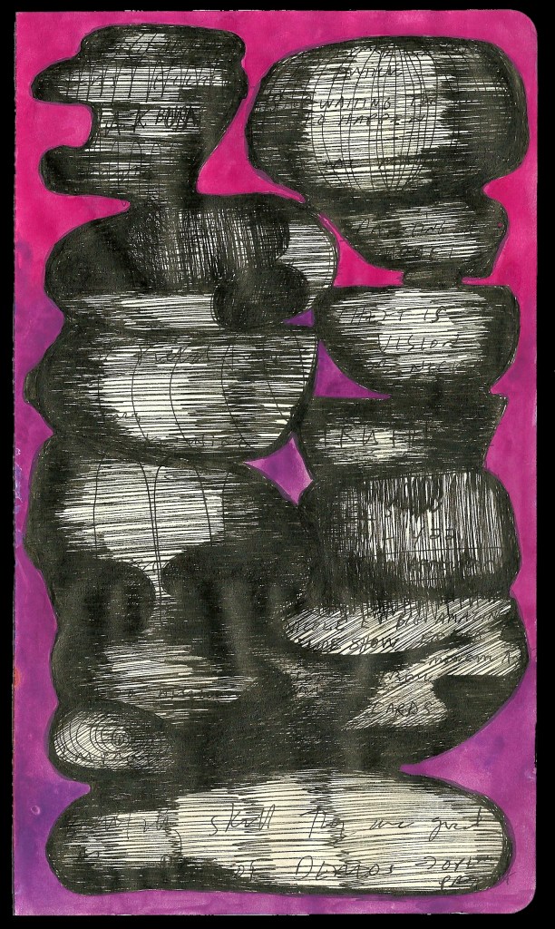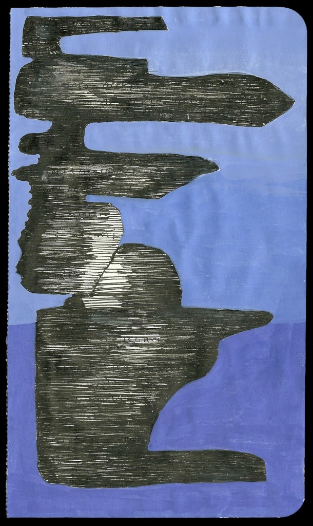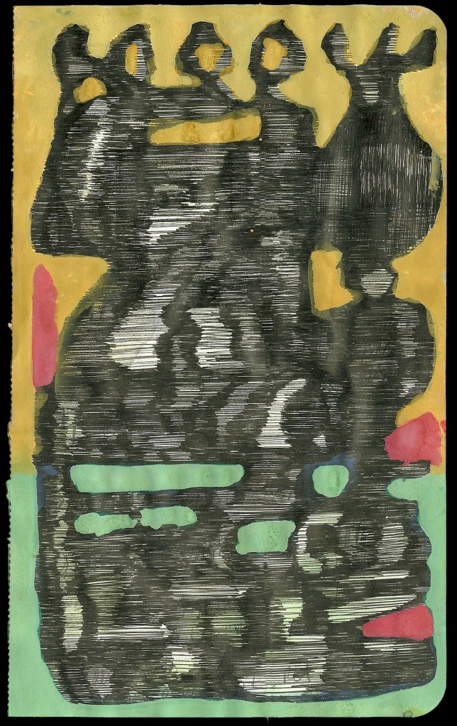 Text Monuments, ink and gouache on paper, 8.25 x 5 inches each