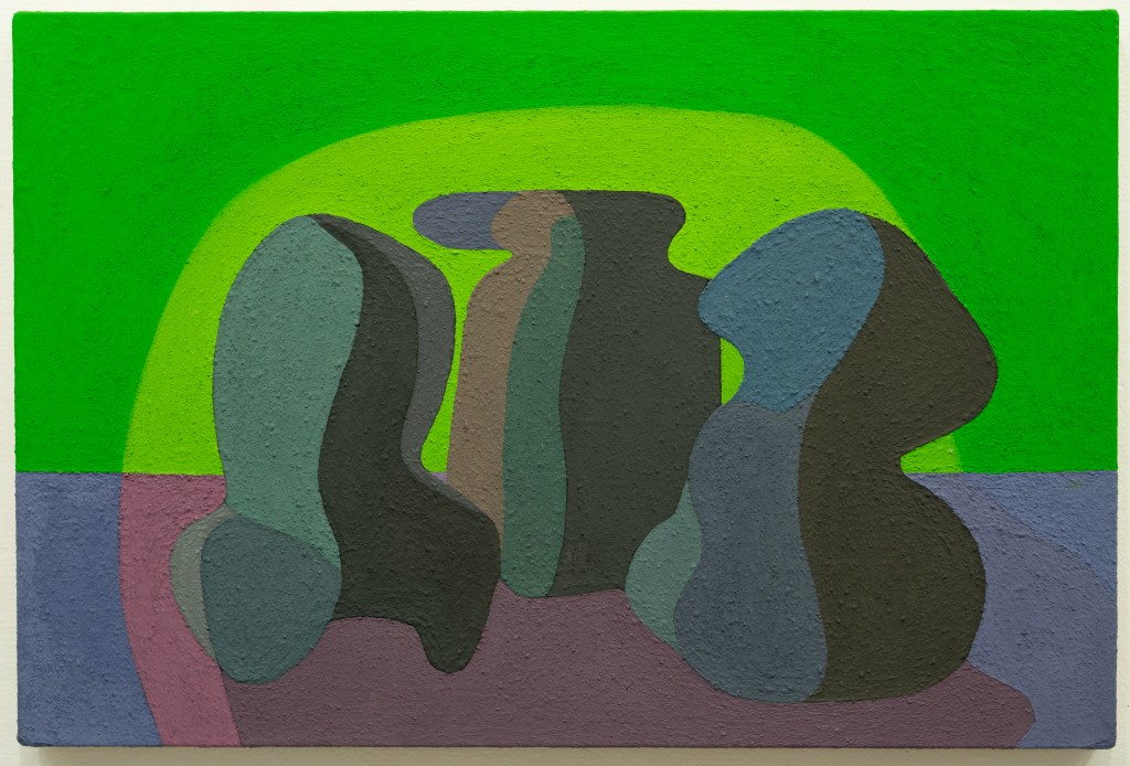 Still-life, (after Morandi): oil, sand, cement on burlap