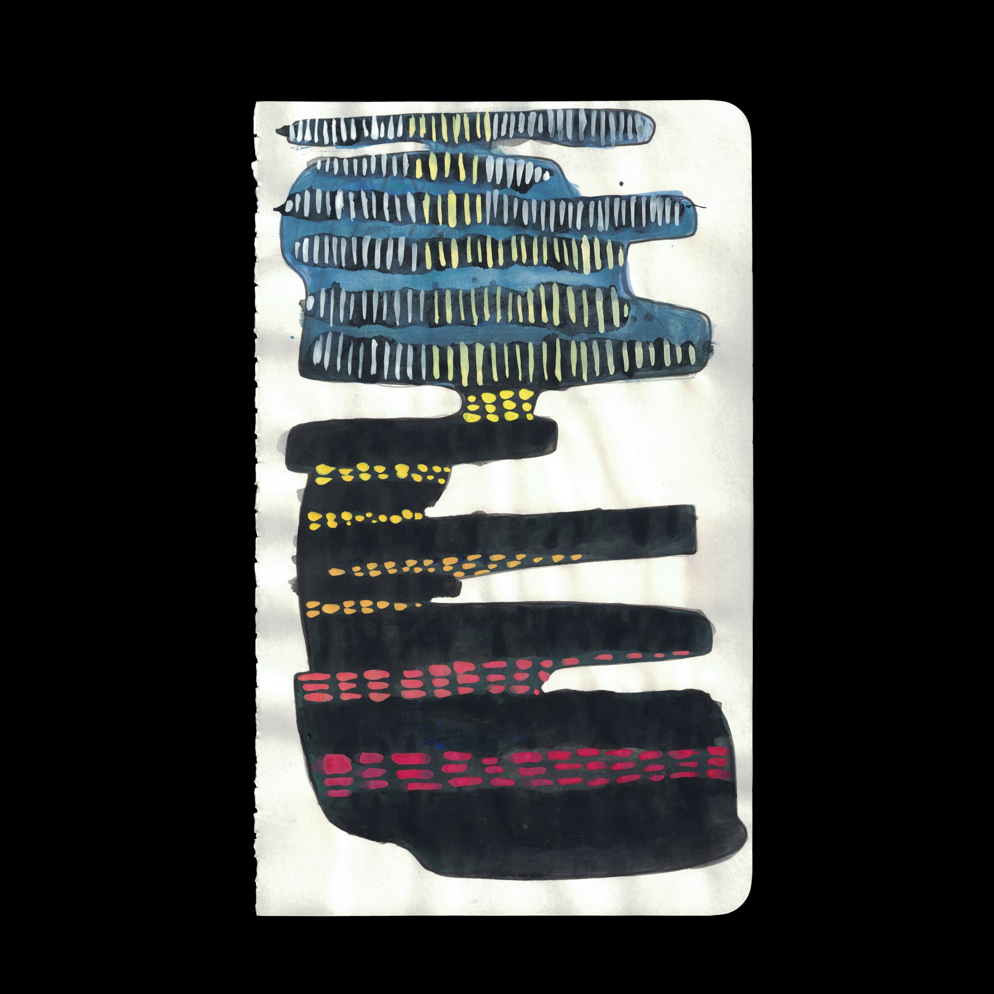 36 small paintings, ink and gouache on paper, 8.25 x 5 inches