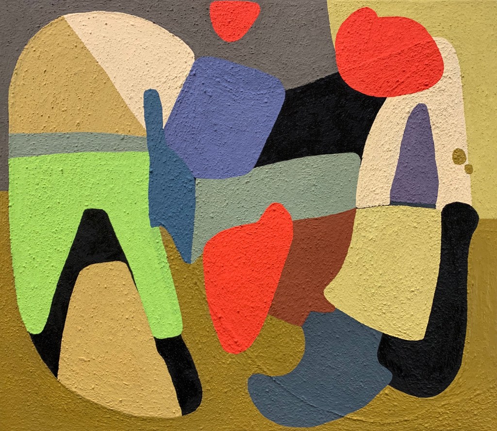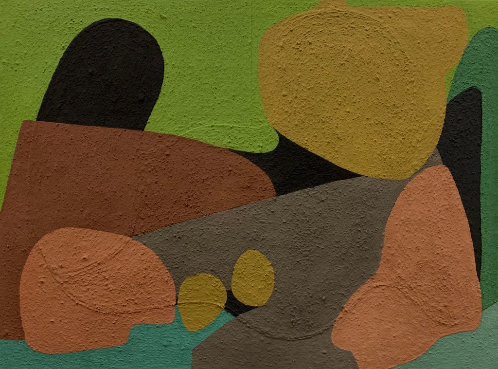 Um Bab, Petra 01, Petra 02, all oil, sand, cement on burlap, approximately 30″ x 38″