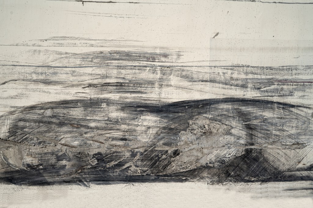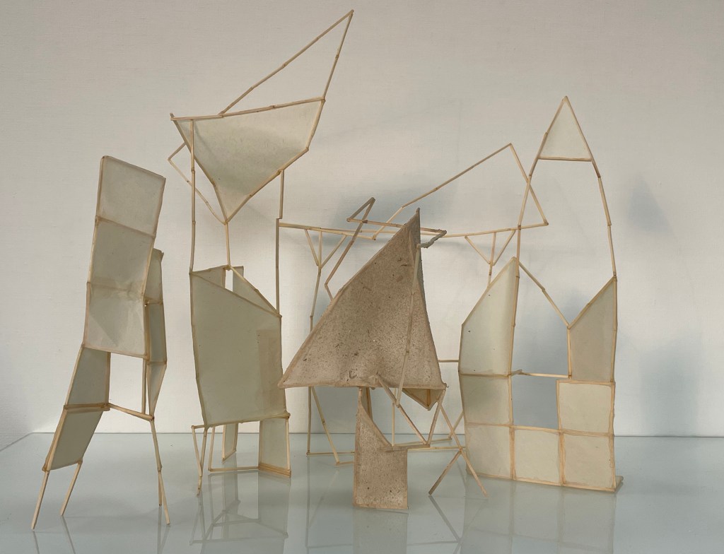Cluster: matchsticks, kozu paper, sand, glue, approximately 30 x 40 inches